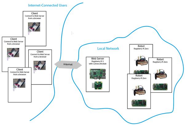 We may even want to scale this up to allow multiple internet-connected users to control multiple robots: